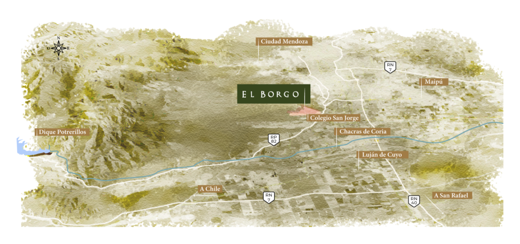 Localizado en el Sur de Mendoza, destaca por su cercanía al futuro Puerto Seco en Lujan de Cuyo y los principales ejes de desarrollo, lo que facilita la logística y acceso a los diversos mercados.